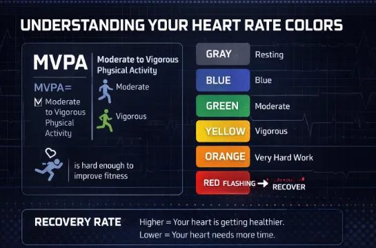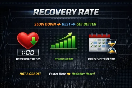 Recovery heart rate: How quickly your heart rate drops after you stop.
